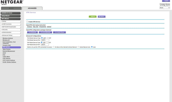 روند خاص پیکربندی VPN در روتر شما نه تنها در مارک های روتر ، بلکه در سرویس های VPN نیز متفاوت است. اگر اتصال VPN را به صورت دستی تنظیم می کنید ، به یک فایل پیکربندی از طرف ارائه دهنده VPN خود نیاز دارید (معمولاً می توانید آنها را در بخش پشتیبانی پیدا کنید). سپس ، فقط وارد کردن پرونده پیکربندی به کنترل پنل روتر و روشن کردن سرویس است. در حال آزمایش با روتر Netgear ، صفحه پیکربندی VPN را در زیر Advanced Advanced Set پیدا کردیم.